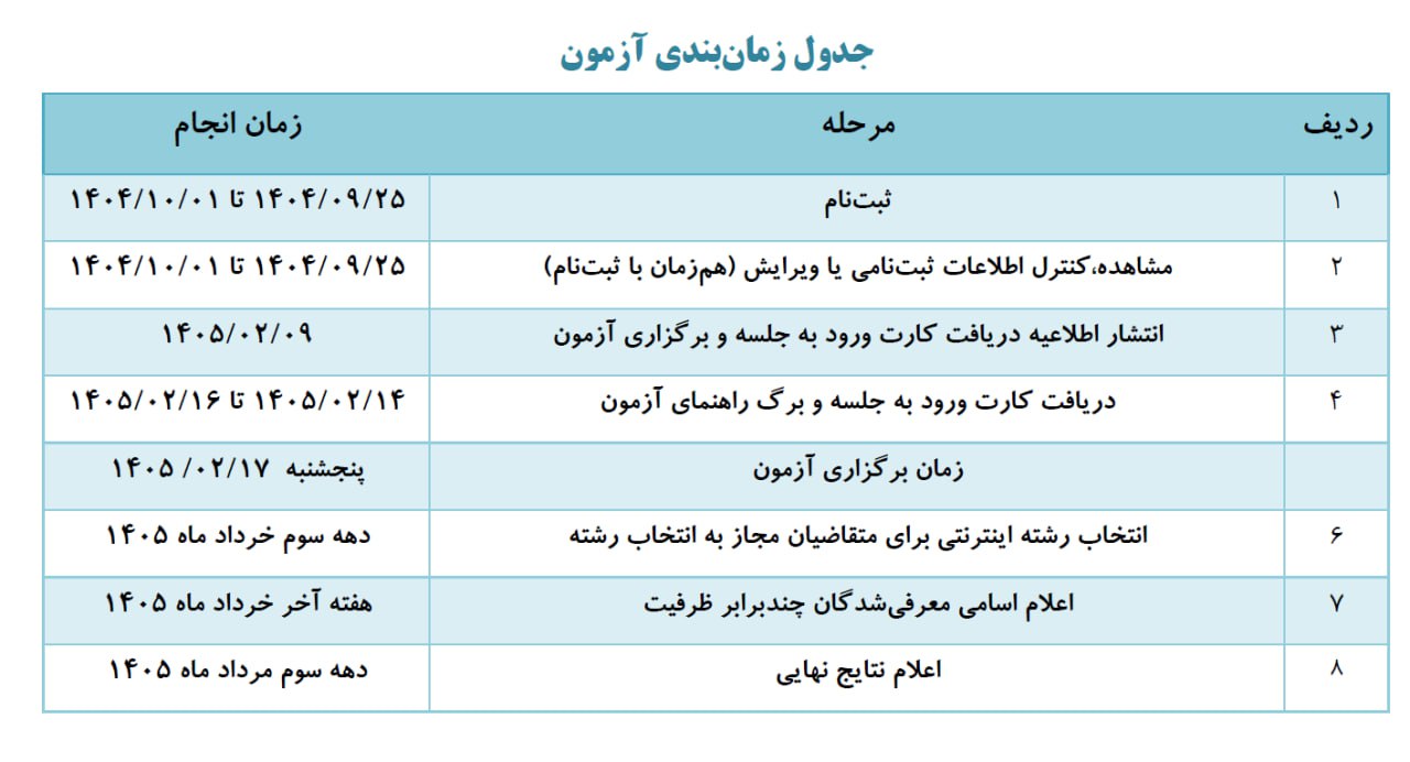 جدول زمان بندی آزمون دانشگاه فرهنگیان